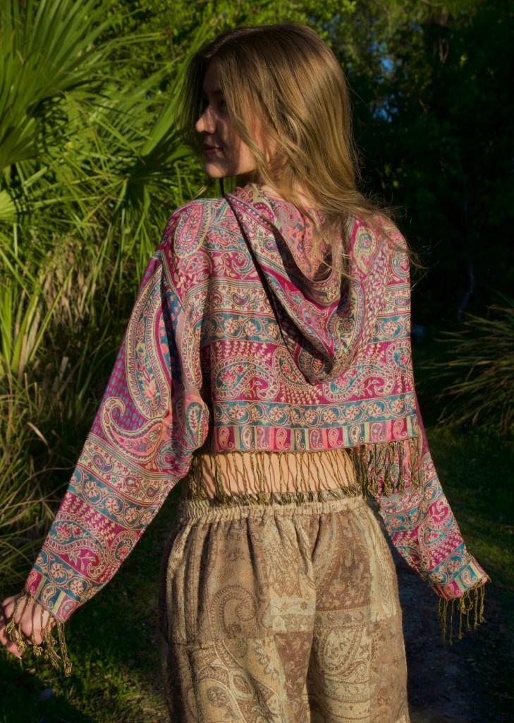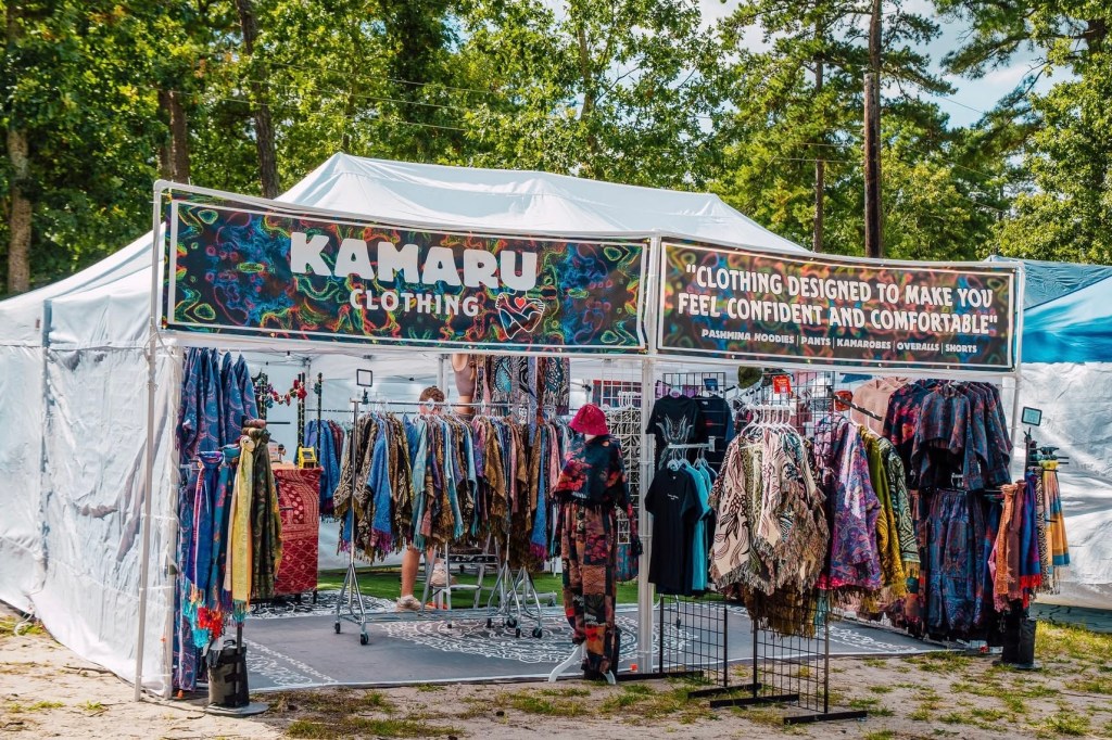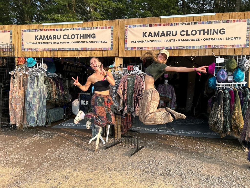 You are Kate, 24, and Kelly, 26, of Mahopac, New York. Owners, curators and the soul behind Kamaru Clothing. Kamaru offers high quality, soft as butter, pashmina style hoodies, pants and more. They are known for their comfort, androgynous fit and unique silhouette. If you’ve put one of these on your body, you know. It takes the afters to another level. Cozy up at camp, enjoy your mushrooms and feel blessed to be wrapped in such gentle material. Festival heads know the importance of a soft moment after releasing their inner demons. Kamaru Clothing has you covered.