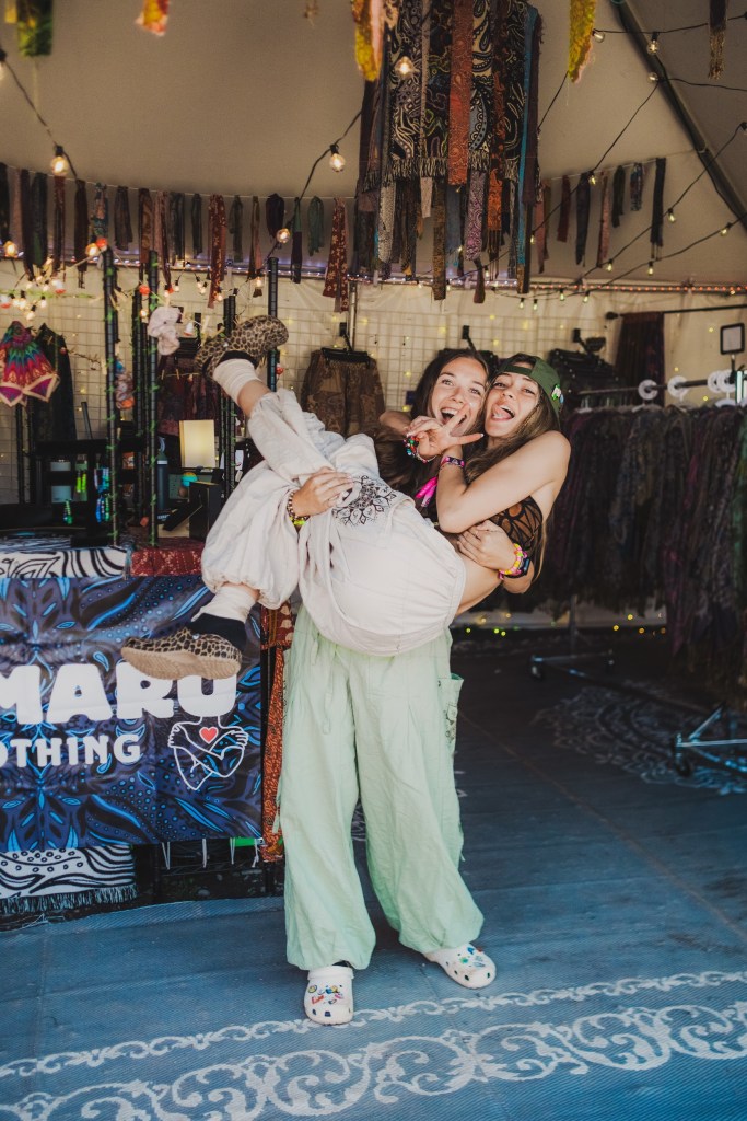 You catch a glimpse of each other’s eyes as the chaos of your first major entrepreneurial success roles around you. Product is flying, energy is being thrown around like you’ve never experienced before. You’re selling out. You’re watching people light up with love as they frolick through your shop. You can barely move, there’s so many bodies. Yet, there’s a synthesis, an alignment. You created something. Your little baby business isn’t so baby anymore. It’s blossoming in real time, the sound of the bass booming in the background, the sounds of Elements Festival 2025.