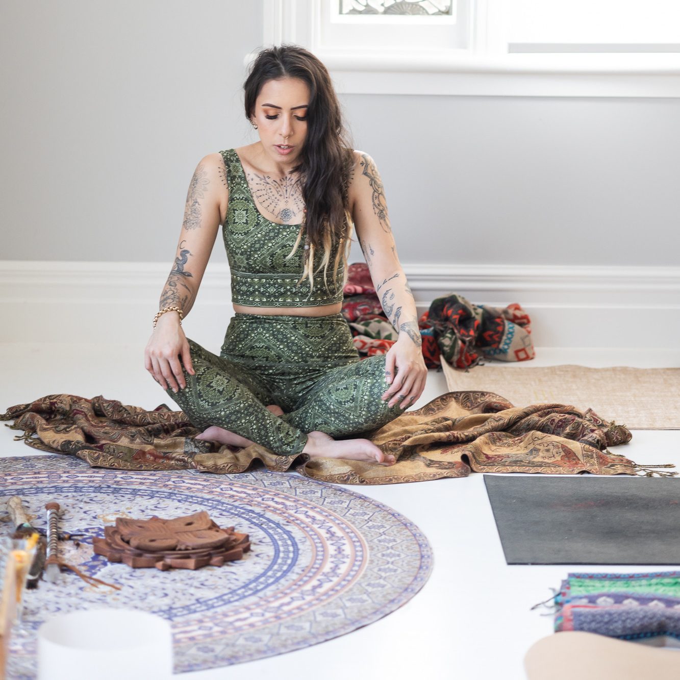 On paper Lunar’s life looks multifaceted: two businesses, teaching, content creation, UGC work, motherhood but to her, none of it feels fragmented. “It’s all woven,” she explains. “Delicately interconnected.” a wisdom in her tone. The retreats, the classroom, the online content, the child she’s raising are expressions of the same philosophy: creativity is healing. Community is medicine and women deserve spaces where they can exist without shrinking.